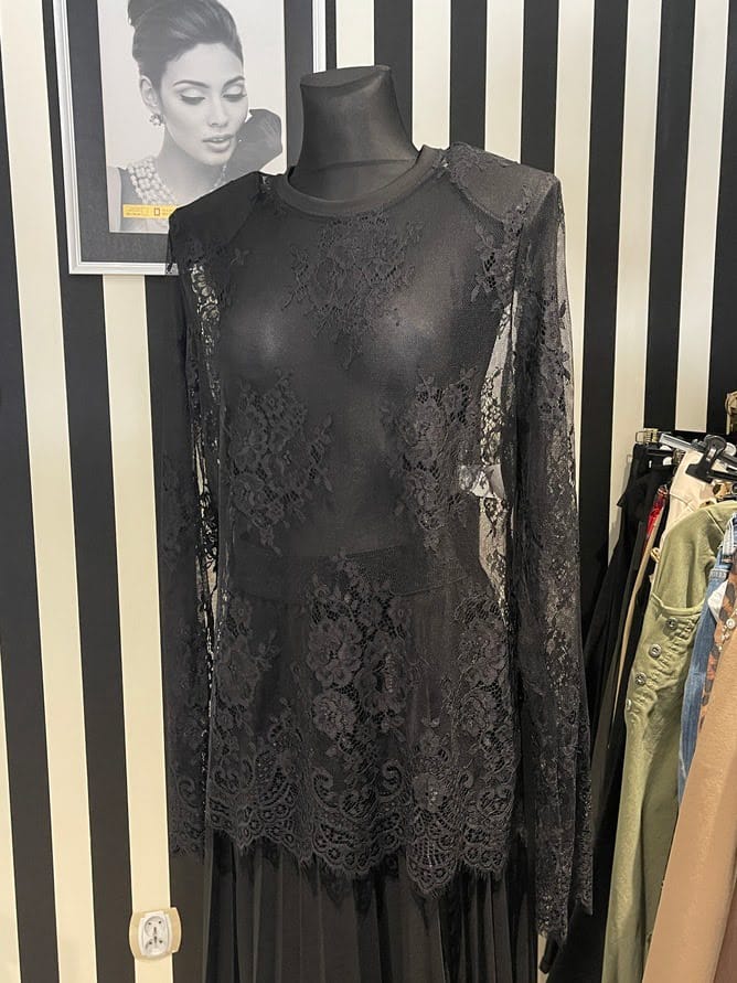 Bluzka koronkowa damska Rozcięcia po bokach Poduszki Kolor: Czarny Rozmiar: Uniwersalny
