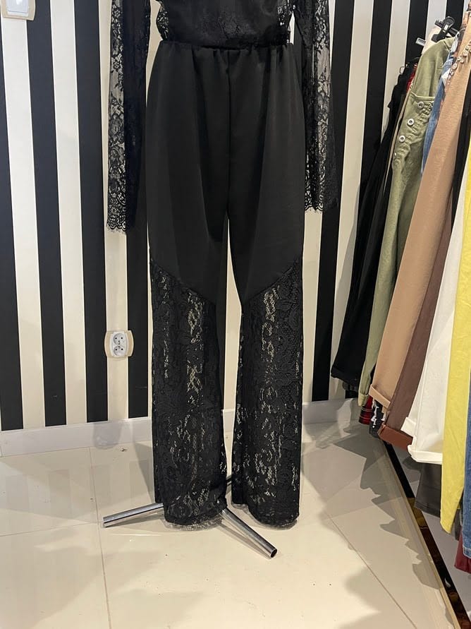 Eleganckie spodnie damskie z ozdobną koronką Gumka w pasie Kolor: Czarny Rozmiar: Uniwersalny do 140cm w biodrach